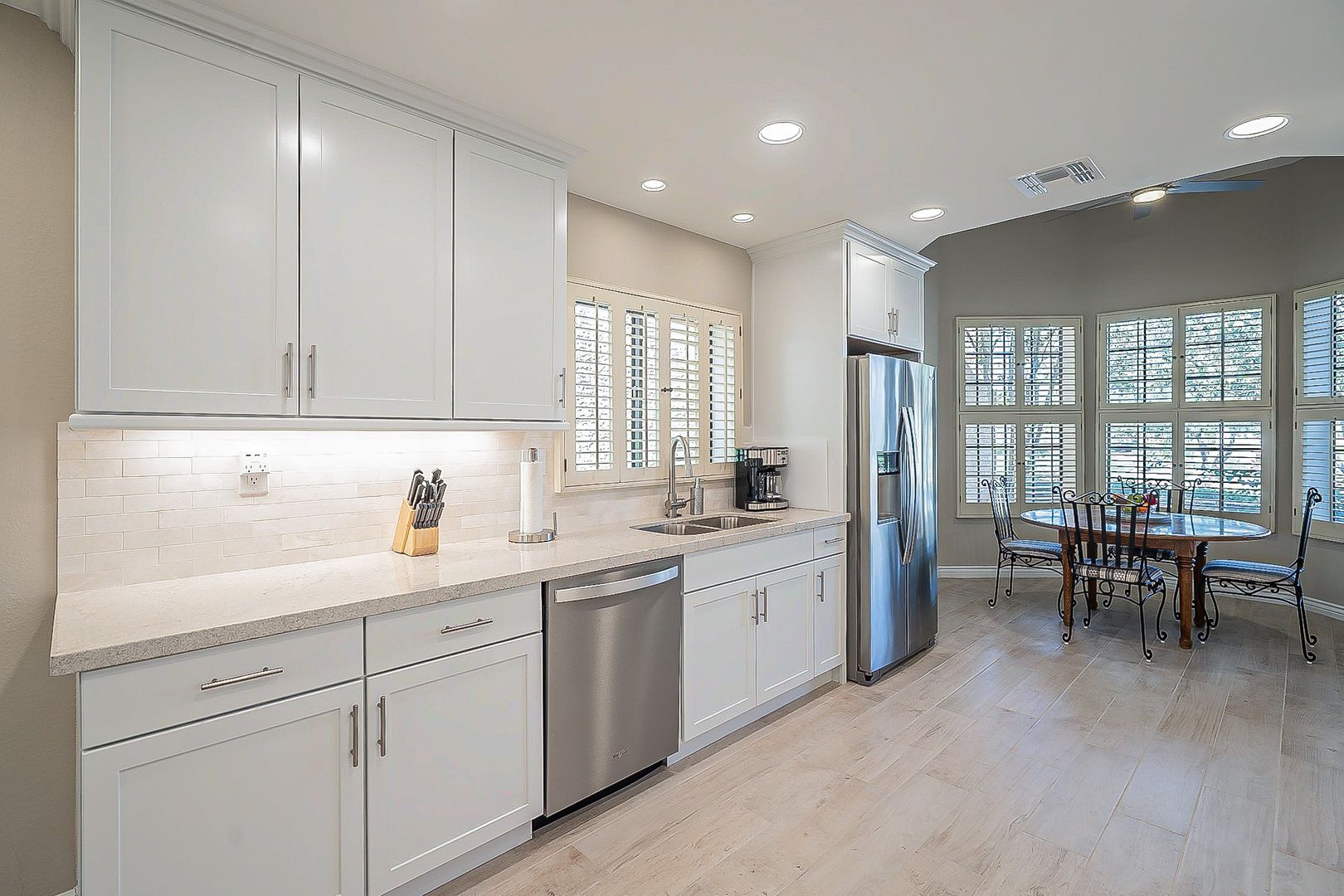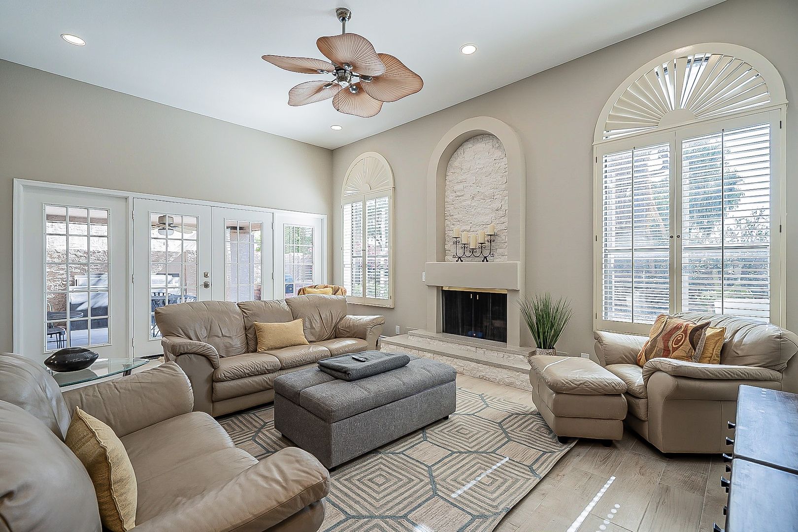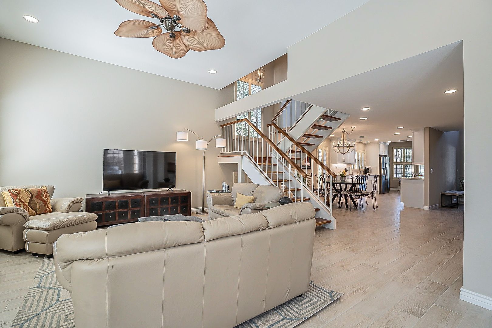 UPDATED 3 bedrooms & 3 baths in gated community of Suntree East. Gourmet kitchen with new white kitchen cabinets and quartz counters. New stainless appliances. Two upstairs master suites and additional guest bedroom downstairs with new shower. All new flooring. Main Master has its own balcony new shower and soaking tub. High ceilings and lots of natural light make this north/south exposure the perfect home. Backyard is complete with covered patio and desert landscape. Community offers year round heated pool and spa. Take advantage of all that Scottsdale Ranch has to offer- tennis courts, lakes, boating, kayaking, bike & walking paths and much more! Close to shopping, restaurants and the 101! 90 DAY MINIMUM. $100 UTILITY CAP FOR ELECTRIC/WATER/GARBAGE. $4700 JUNE TO AUG. $5100 SEPTEMBER, OCTOBER AND MAY. $5500 NOV TO APR. ALSO AVAIL FOR ANNUAL RENTAL (WITHOUT UTILITIES) $5100/MONTHLY ON ANNUAL LEASE. TENANT AGREES TO NO SMOKING, NO USE OF INTERIOR FIREPLACE.